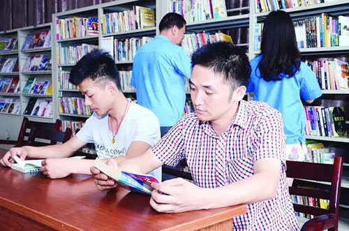 新凤鸣集团股份有限公司宿舍区的图书馆人头攒动,种类繁多的书籍吸引了不少有志青年。