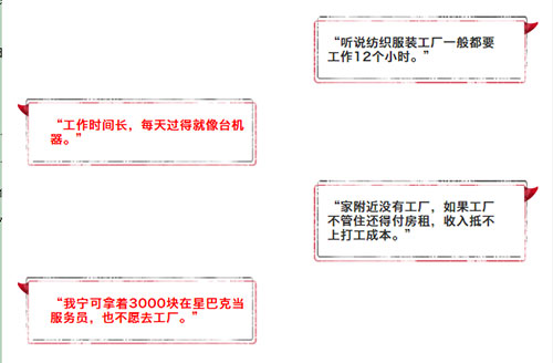 事实上,像这样的纺织企业还有很多很多。拿着3000元在星巴克当服务员真的比领7000元工资在纺织厂好吗?