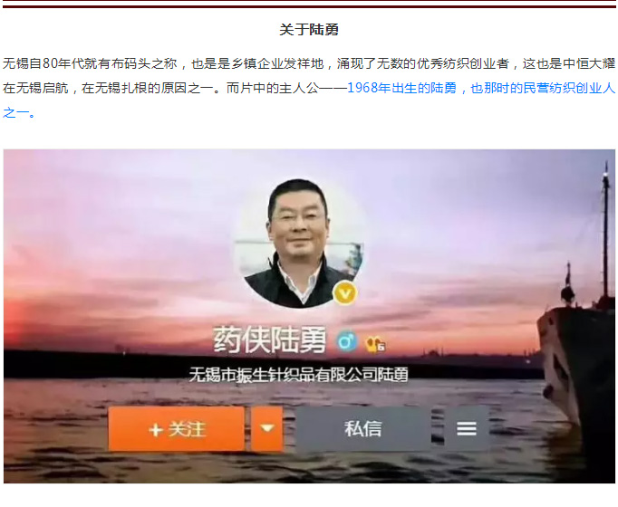 而大家有所不知的是,《我不是药神》主角“程勇”的原型——陆勇,是无锡一家针织品出口企业老板,是一位货真价实的纺织人。