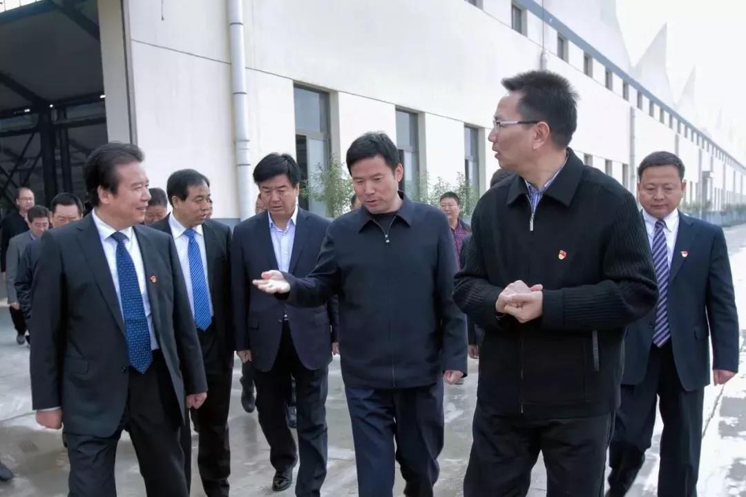 周秦伟(前排右一)向宝鸡市委书记徐启方(前排右二)介绍生产情况