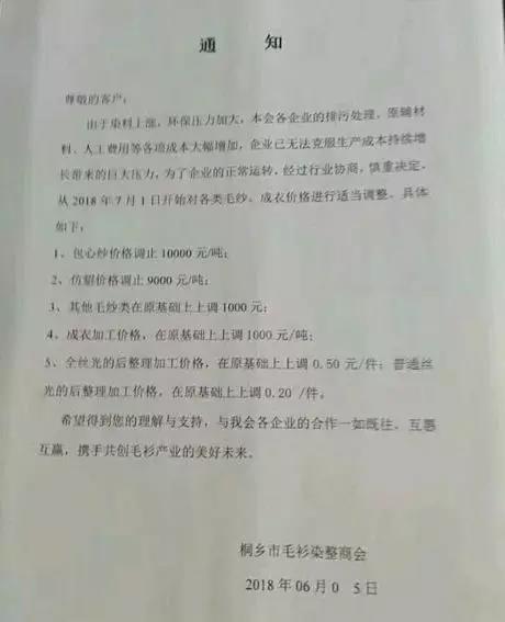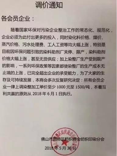 涨就一个字,要涨好多次!近日,常熟印染商会发布提价建议函、桐乡毛衫染整商会发布涨价通知、佛山顺德纺织印染分会发布涨价通知.......看来,2018年的纺织服装行业,注定是不平静的一年。要想赚钱,还真得使出浑身解数。