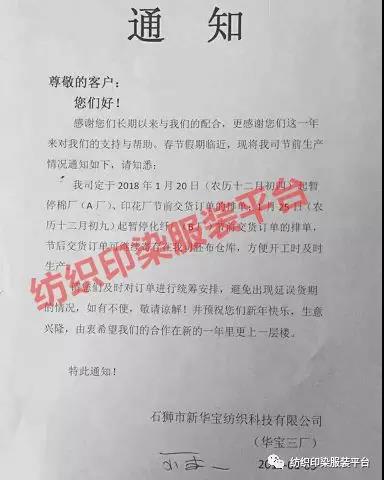 石狮大堡工业区印染厂放假通知