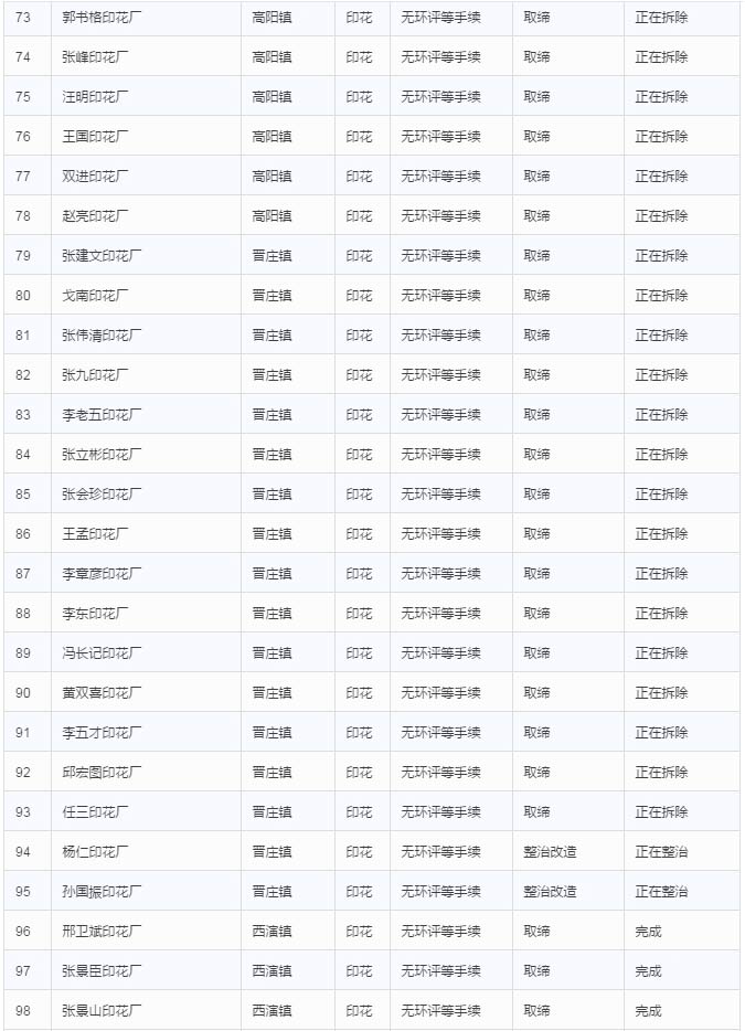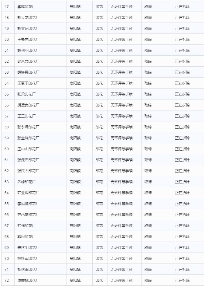 177家印染印花厂被取缔:河北高阳县是中国毛巾毛毯名城,1997年就被河北省政府命名为纺织强县,有中国最大毛巾专业市场——高阳县纺织商贸城,高阳县纺织博物馆是中国唯一的县级专业纺织博物馆。