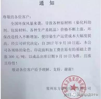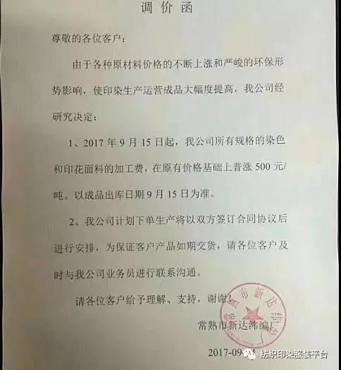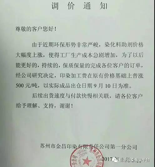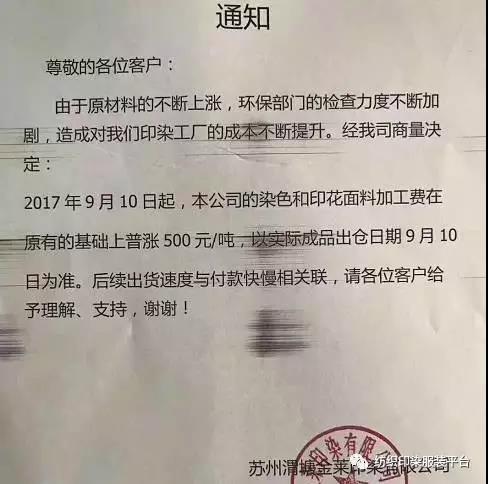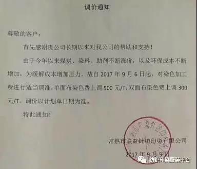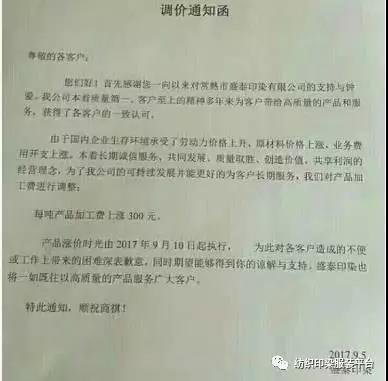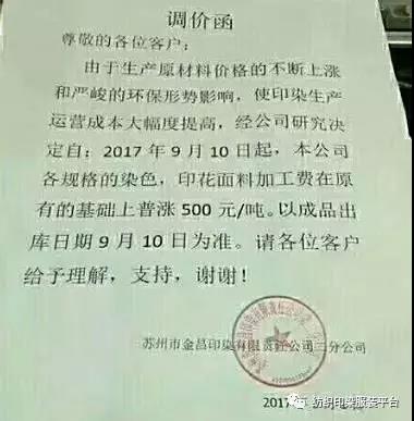 10多家印染厂统一涨500元,难道是开会说好的?