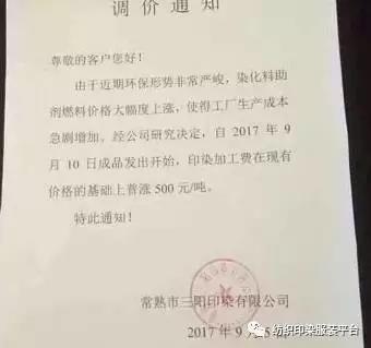 常熟印染企业统一上涨染费500元