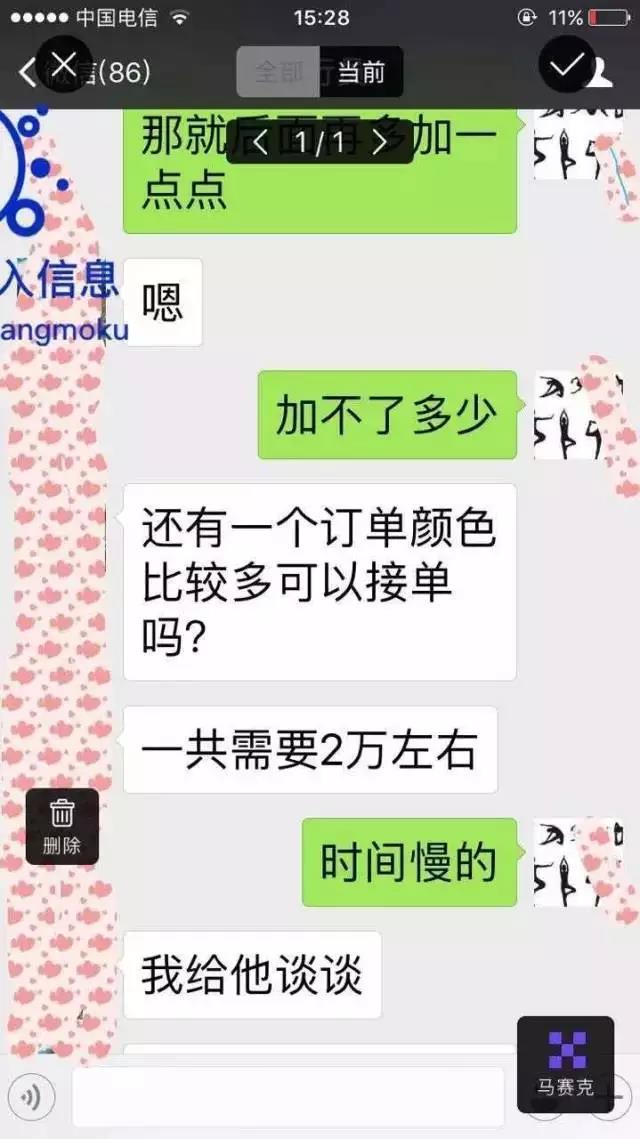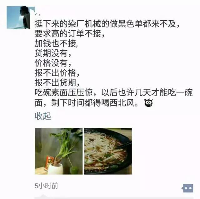 看来染厂的业务员近期也是被布老板逼得快崩溃了,他们心里非常急,可奈无法变出一缸布给布老板!据染厂业务员透露,现在染厂在挑客户,不是客户挑染厂,因为生产染缸数量有限,在一半左右,所以优先给量大的老客户做,优先生产速度快利润又高的品种。他们虽然作为业务员,却也无法控制车间生产的流程与安排,他们的苦向谁诉?他们此时定是急的焦头烂额,满含泪水地想尽办法要给布老板一个交代,实属不易啊!