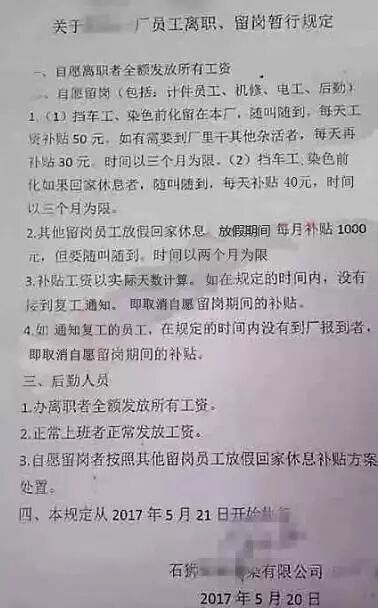 而今年雷厉风行的环保督查,更是让伍堡的印染企业,从5月11日起至公函下达前,停产了一个多月。因为对开机时间的不确定,多家企业发出停止收布的通知。一些企业甚至已经让员工放假在家待业,自愿离职的将发放所有工资。