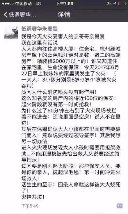 事发后,女主人的哥哥在悲痛欲绝中控诉了控诉了物业的不作为,救援措施的不合格。