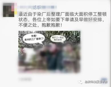 据平台君从石狮印染企业获悉,整个伍堡工业区印染企业从5月11日起,已经停产3天。截止发文前,尚未开机!正因为对开机时间的不确定,多家企业发出停止收布的通知。