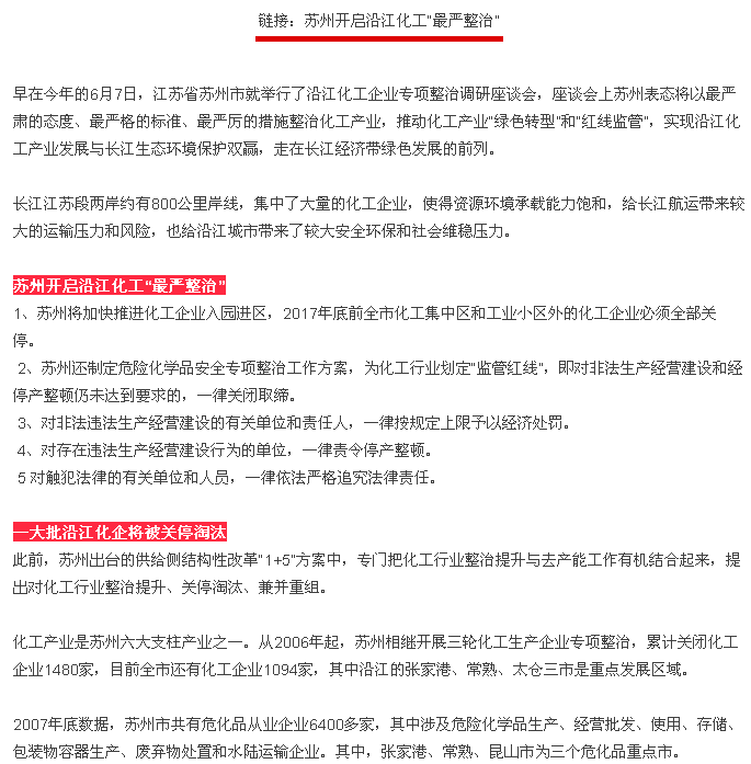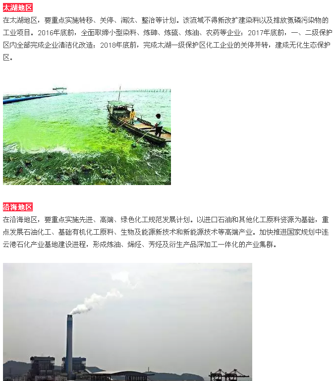 在石化产业最为集中的沿江地区,要重点实施压减、转移、改造、提升计划。有序推进区域中心城市周边和沿江两岸化企向有环境容量的沿海地区转移。不得新建和扩建以大宗进口油气资源为原料的石油加工、石油化工、基础有机无机化工、煤化工项目。严禁在长江干流及主要支流岸线1千米范围内新建危化品码头。