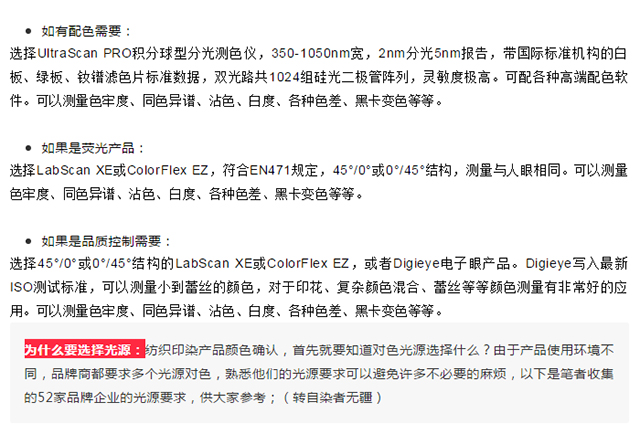 光源这事,不再操心:印染行业常见的光源非常多,比如:D65,A,C,D50,D55,D75,F 1,F2,F3在国内外的测色配色软件中,经常使用。这么多的光源,让一些面料商和印染厂觉得容易出现工作失误而导致退货。读了这篇文章以后,估计你会豁然开朗。