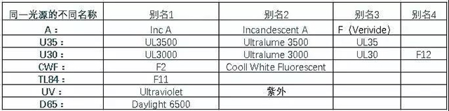 CWF,WWF,TL84,U30,HOR国际上经常使用的商业光源。