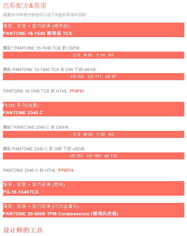 Pantone 2019年度流行色珊瑚橙 (Living Coral)