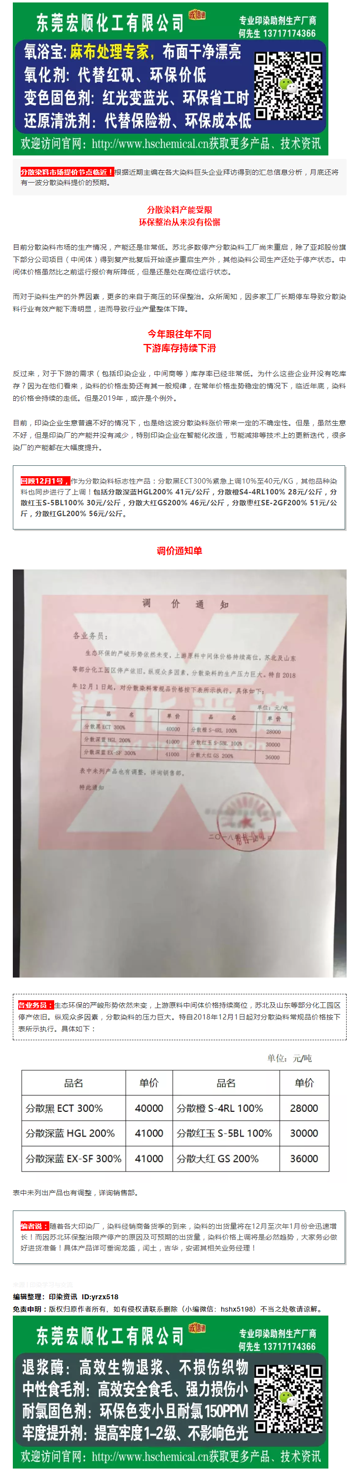 即将上涨!分散染料价格或将在12月底,开启涨价模式,请做好备货准备!
