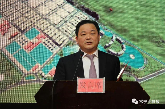 签约仪式上,常宁市委副书记、市长吴乐胜为项目代言并作推介,同时代表市委、市政府对出席此次签约仪式的各位来宾,表示诚挚的欢迎和衷心的感谢。他强调,常宁全力支持入驻企业的建设和发展,为企业提供一流的服务和环境; 下一步,将继续加强政、银、企的沟通对接,对企业存在问题及困难及时跟进,着力强化靠前服务意识、为企业提供“GPS定位”追踪服务和“保姆式”服务,让入园企业落地结果,在常宁这片投资热土上收获财富、收获友谊、收获成功,取得双赢。