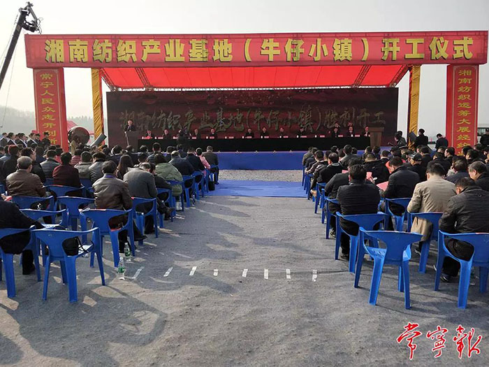 早在2018年2月12日,湘南纺织产业基地(牛仔小镇)项目在常宁市开工。该项目包括环保设施园、服饰生产园两大部分。项目总投资100亿元,建成后服饰年产量将达15亿件,年产值达1000亿元,创汇达160亿美元。项目分两期建设,其中一期投资30亿元,服饰年产量5亿件,年产值300亿元。