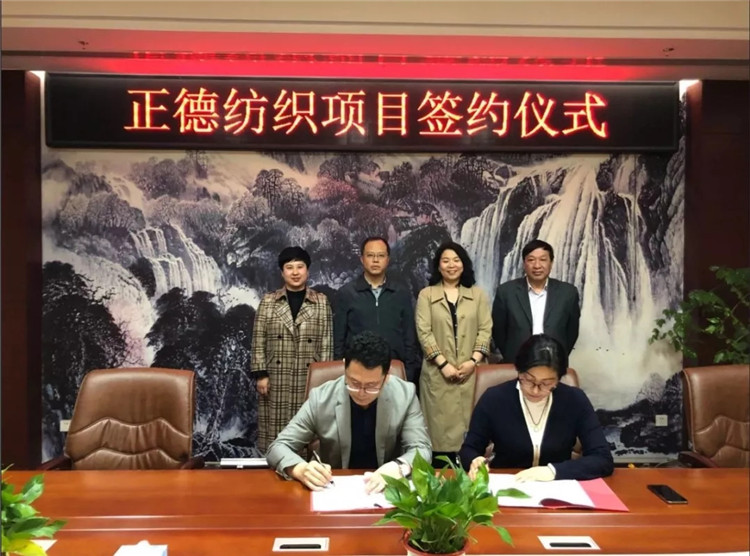 4月15日,正德纺织项目正式签约落户德安。县委副书记张浔,县人大副主任、总工会主席桂天华,县政府副县长刘宁,聂桥镇主要负责同志出席签约仪式,刘宁代表县委县政府与企业代表签约。
