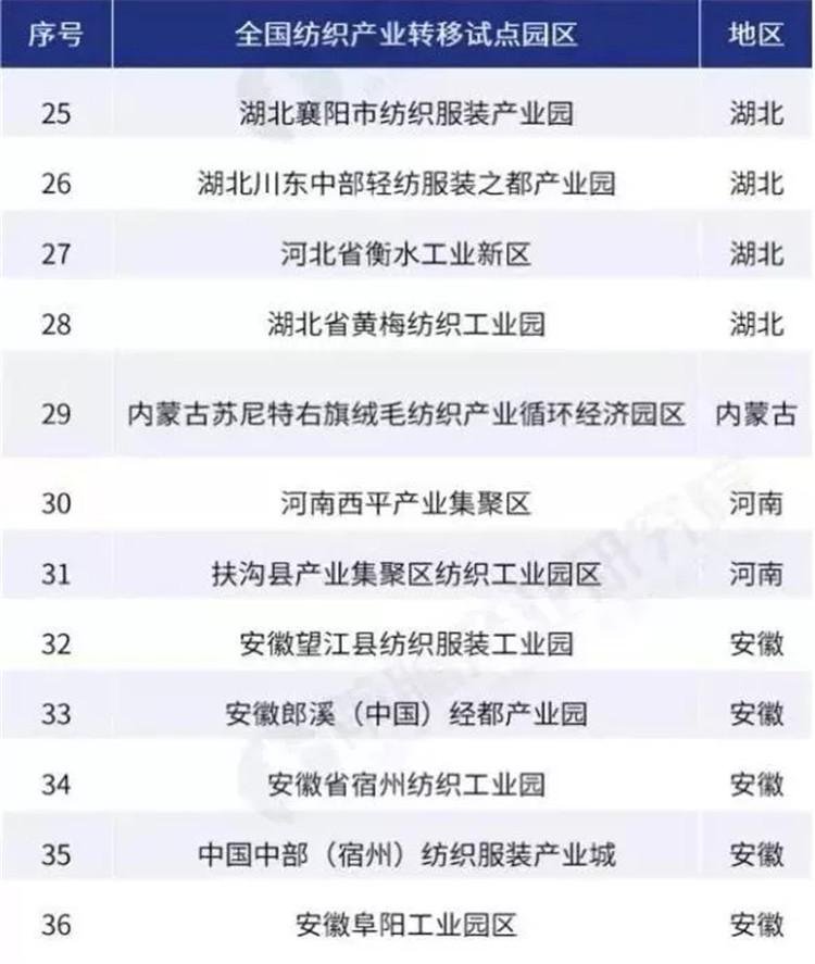 纺织业向中西部转移火热进行中36个转移园区你看好哪个?