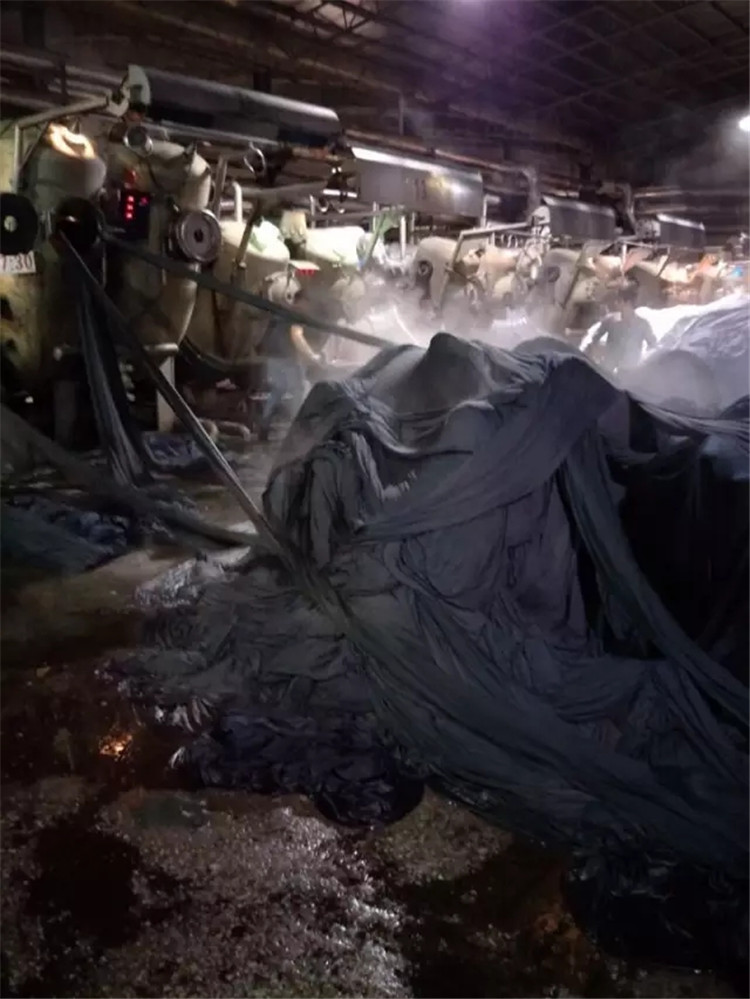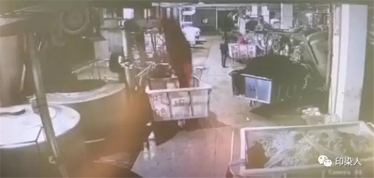 另一个事故是前两年,某印染车间高温缸发生恐怖的喷爆,染液在强大的压力下,夹杂着布料从染缸喷爆而出,事后现场一片狼藉。