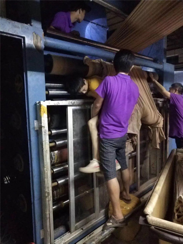染厂夜班生产过程中,最容易发生安全事故,2018年9月,三水某染厂夜班工作中,工人不小心被卷进磨毛机,幸亏及时发现,紧急停车。
