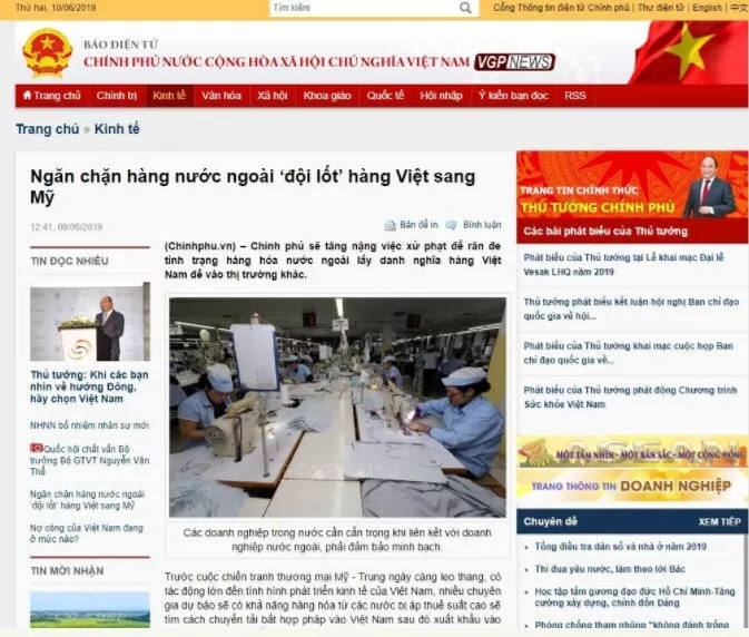 这是自世界最大两个经济体之间贸易紧张局势今年升级以来,首批对此类不当行为进行公开指责的亚洲政府之一。越南海关总署正在大力指导海关部门,加强货物原产地证书的检验和认证,避免外国商品印着“Made in Vietnam”的标签转运到美国市场,主要针对中国转运出口产品。