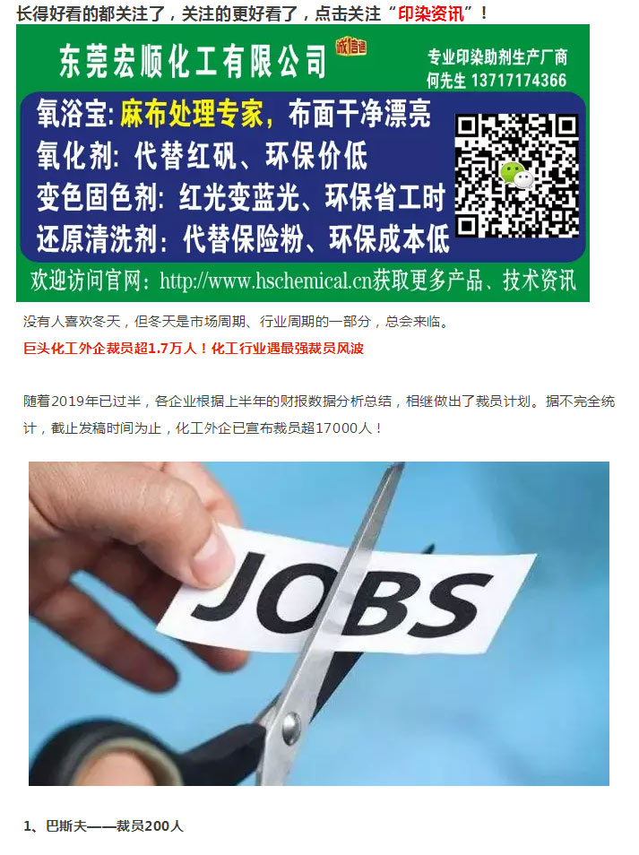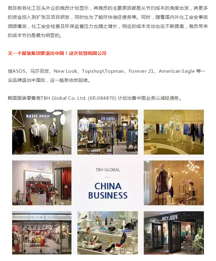 巨头化工外企裁员超1.7万人,又一个服装集团要退出中国!纺织行业“玩不起”:要么出局,要么出众!