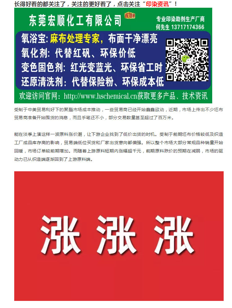 再也!扛不住了!下游100多家纺织企业抱团涨价0.5-1元/米!