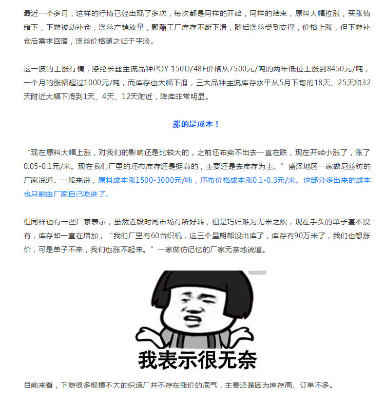 下游纺织企业实名举报原料巨头操纵市场,为8千万纺织从业人员主持公道!