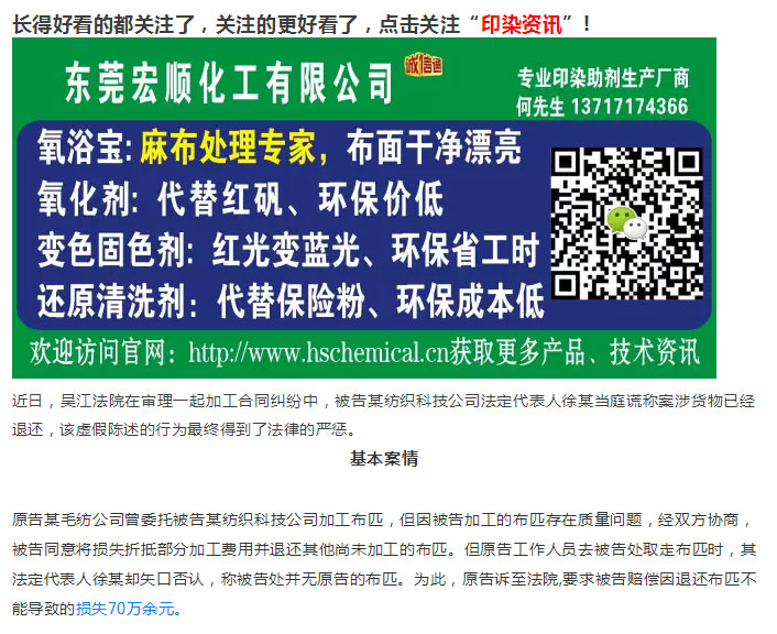 卖布老板和染厂干了一场官司......结果布行赢了!