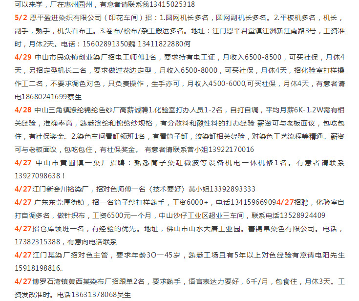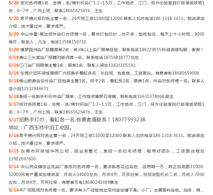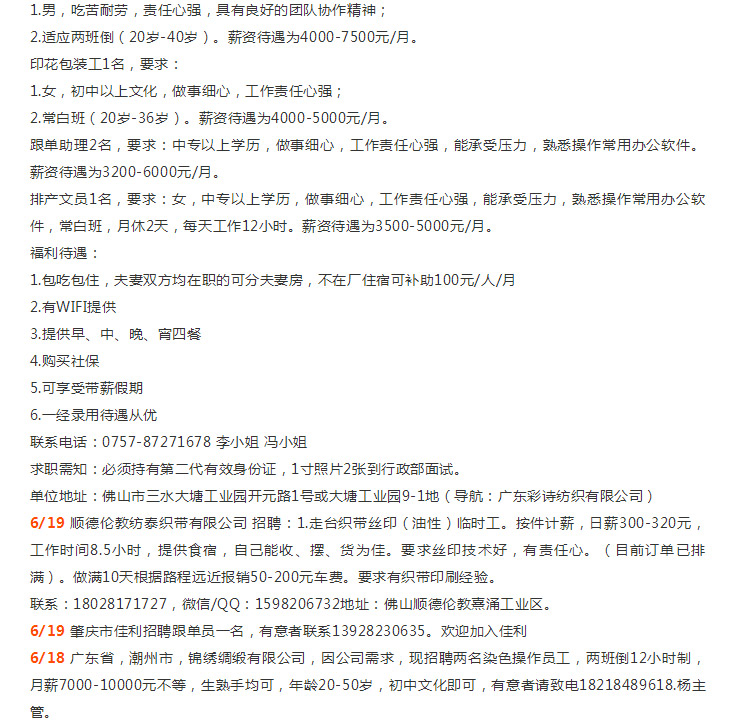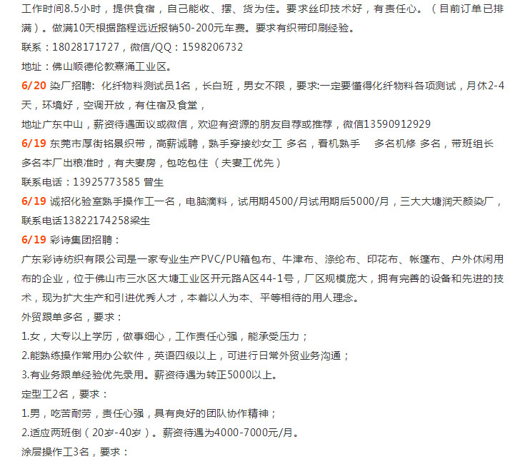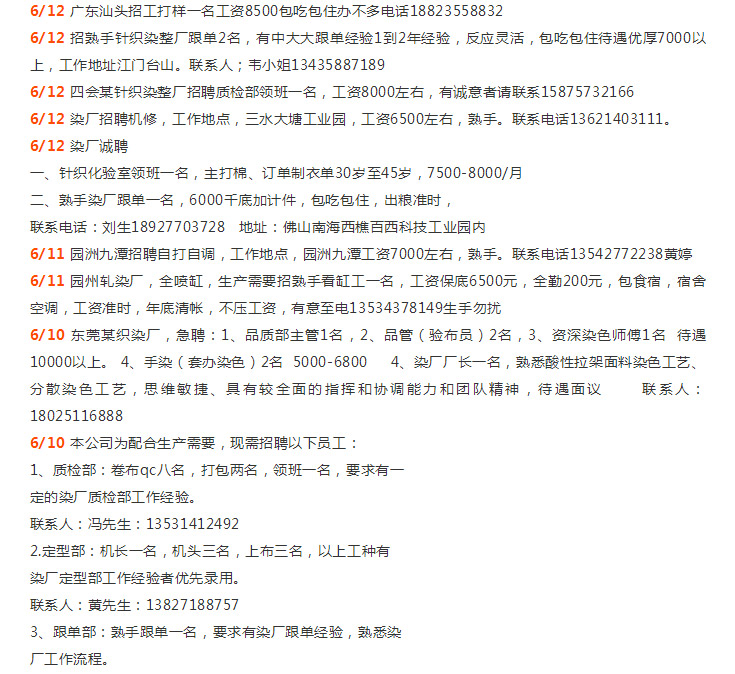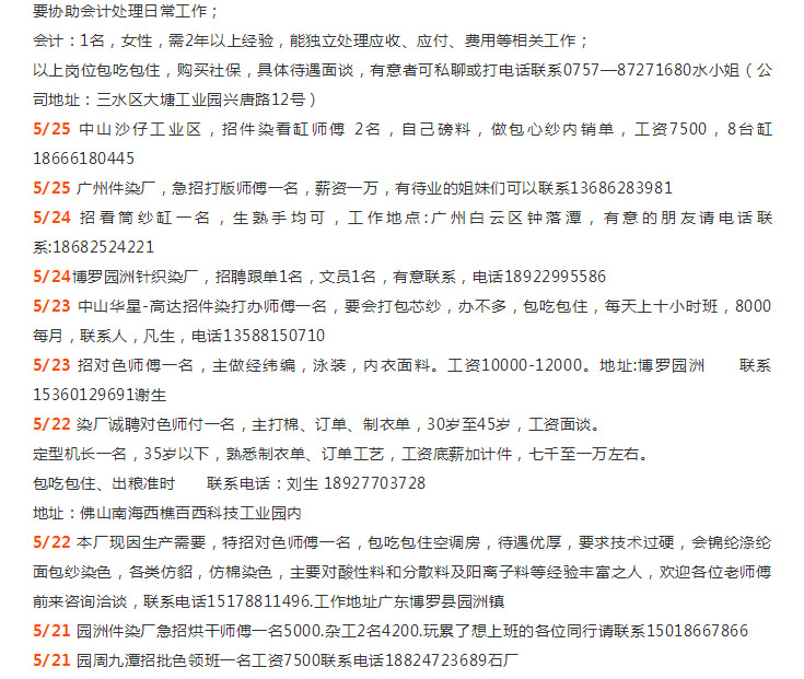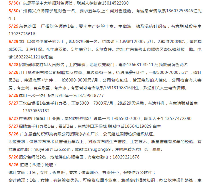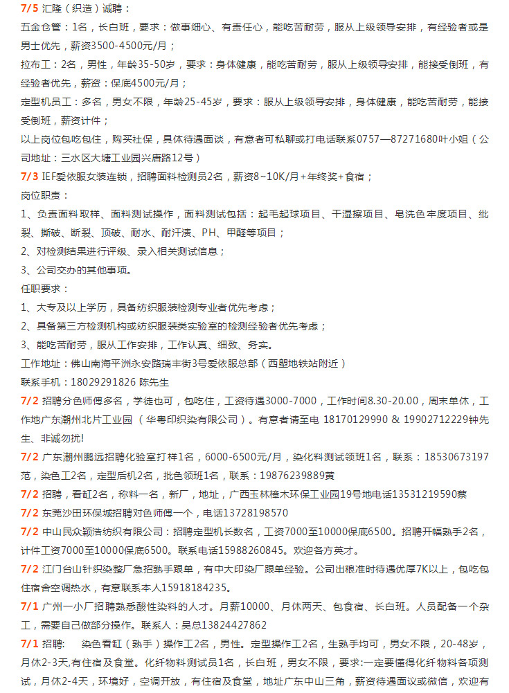 年薪N万招师傅|溢达集团、佛山新环隆、汇隆、佛山三水科丽达、佛山中汇、三水彩诗/汇隆、中山胜丰