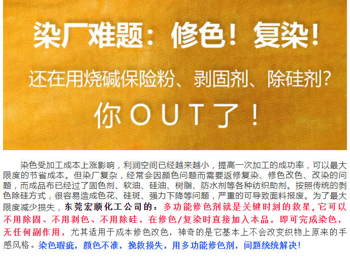 染厂难题:剥色、修色!还用烧碱保险粉、剥固剂、除硅剂?