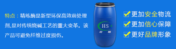 精练酶是新型环保高效前处理剂,是对传统烧碱工艺的重大变革。该产品可避免纤维过度损伤,减少失重(比传统工艺少3-5%),使用后明显增加白度、毛效和亲水性,改善可染性和匀染性。该产品易于漂洗,可减少水洗次数,操作简单。精练酶为实现经济、环保、短流程前处理方式提供了有效途径。