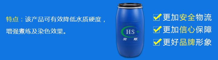 该产品可有效降低水质硬度,增强煮练及染色效果。