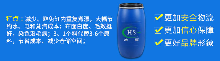 1、低泡、不含APEO。 2、优异的渗透、乳化、精炼、螯合分散性能。 3、有效的控制双氧水的分解速率,降低破洞风险。 4、有效的去除淀粉浆、PVA等浆料,增进织物的光泽感。 5、乳化性突出,可有效的去除蜡丝、蜡档,同时,对各种油剂的去污力强。【使用方法】