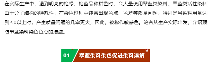 活性翠兰染色色点、色斑原因分析及预防措施