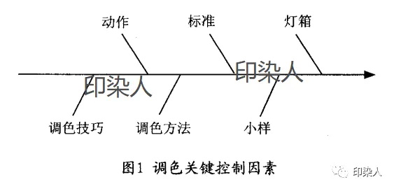一次准确通过率和按时交期是纱线染整厂的主要业绩参考指标 ,车间调色命中率的提高为染色的一次准确通过率和按时交期提供了坚实的保障 ,影响车间调色命中率的关键控制因素由以下几个重要部分所组成:见图1