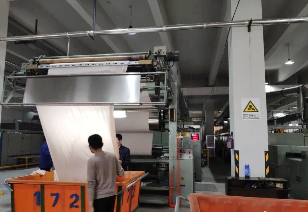 如实际操作时发生布面不干情况,先检查机器是否正常;如是则先通知工艺负责人调慢车速并作工艺的更改。同温度情况下,保持布面干(0-6%含湿率)相差2- 3M/MIN对布面影响可忽略。
