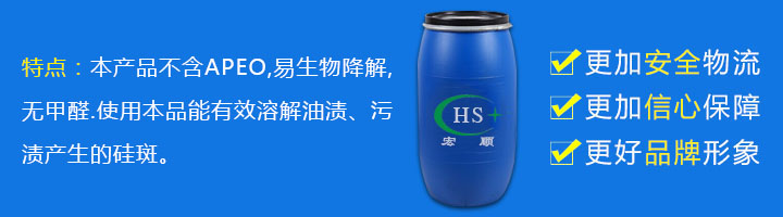 本产品不含APEO,易生物降解,无甲醛.使用本品能有效溶解油渍、污渍产生的硅斑,能有效去除有机硅等产生的交联物。